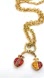 VINTAGE ERWIN PEARL HEART CHARM NECKLACE GOLD TONE ENAMEL RED YELLOW DOUBLE LINK