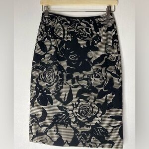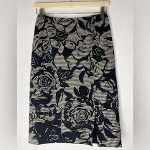 VINTAGE ESCADA MARGARETHA LEY NEW WOOL ROSES PATTERNED PENCIL SKIRT SIZE 34