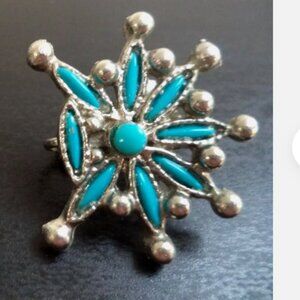 STUNNING VINTAGE ESTATE PETIT POINT TURQUOISE CLIP EARRINGS!!! 1975
