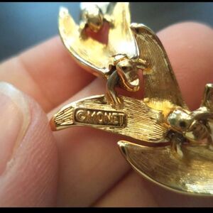 This exquisite vintage estate necklace by Monet features a radiant gold-tone finish and a beautiful floral motif. The design showcases sleek, curved leaves that intertwine in a graceful, organic flow, creating an elegant centerpiece. The necklace measures approximately 15.5 inches in length and is secured with a sturdy lobster clasp and a finely detailed chain, enhancing its refined appearance. The necklace’s timeless beauty and quality craftsmanship reflect the signature style of Monet, making it a perfect statement piece for any collection