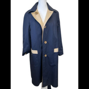 VINTAGE ETIENNE AIGNER Classic Reversible Rain Coat. Trench Belted. Navy/Tan.