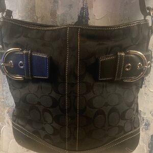 VINTAGE EUC ! Coach Soho Soft Duffle Bag Black Signature Coach pattern