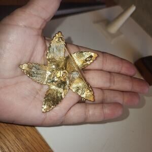 VINTAGE EUC GOLD TONE PINK RHINESTONE FLORAL PIN