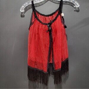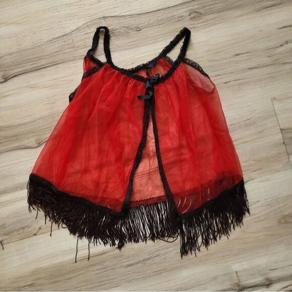 60's sheer red fringed lingerie nightie 1960's trashy sexy playmate black lace fringe babydoll chemise