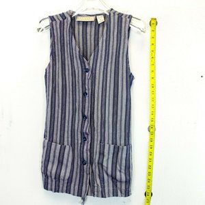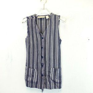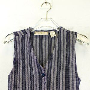 VINTAGE EXPRESS USA Women's Navy Blue Gray Vest MEDIUM Striped Sleeveless Button Front Features - V Neck, Front Pocket, Button front, Button closure, Striped pattern, Sleeveless, Made in USA, Knitted, Vintage