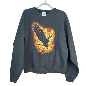 VINTAGE Eagle Anvil Human-I-Tees Crewneck Graphic Sweatshirt Size L Faded Black