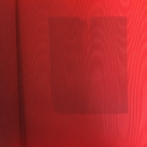 Imperfection: There is discoloration on the first red (moire) page, suggesting a removed bookplate, which is common