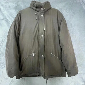 VINTAGE Eddie Bauer Puffer Jacket Womens M Gray Hoodie Goose Down Parka Pockets