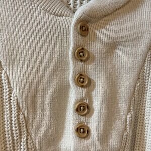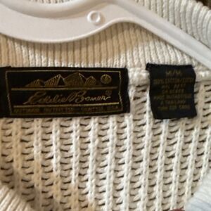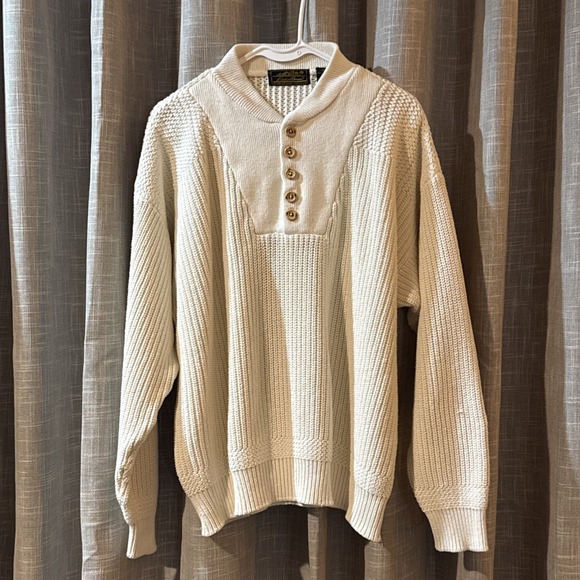 VINTAGE Eddie Bauer Sweater Henley Cream Ribbed Fisherman Crewneck Knit 80s