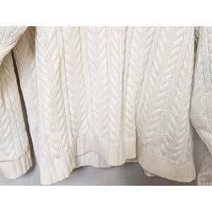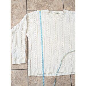 VINTAGE Eddie Bauer Sweater Mens L Ivory Cable Knit Crew Neck Fishermans Knit