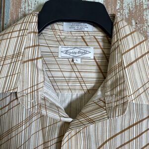 Eighty Eight vintage men's button down is cool. It's a large, retro style, brown, and tans striped long sleeved shirt. We used to call it clubwear. It definitely gives off vintage vibes, in a super cool way. It is 60% cotton and 40% polyester. It is in excellent condition, please see photos for details.