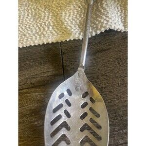 VINTAGE Ekco Eterna Stainless Steel w/Wooden Handle Slotted Straining Spoon USA