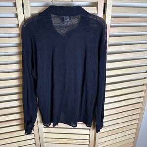 VINTAGE Elee Sheer Stretch Spider Web Print Button Front Shirt, Black | Sz XL