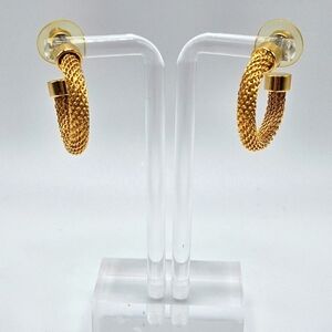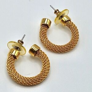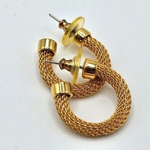 VINTAGE Elegant Gold Plated Mesh Hoop Post Back Earrings
