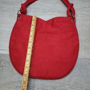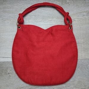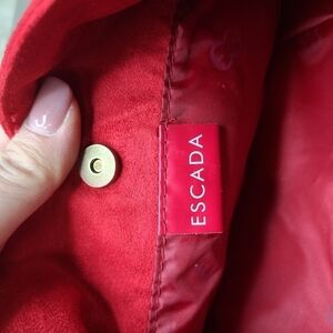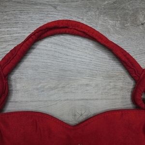 VINTAGE Escada Red Velvet Bronze Logo Sweetheart Knotted Strap Handbag