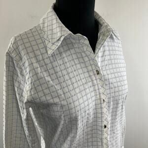 VINTAGE Escada White Blue Check Long Sleeve Button-Down Women's Cotton Shirt S