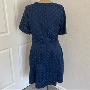 VINTAGE Ester Lauder Blue Short Sleeve Opening Ceremony Pleated A-line Dress
