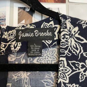 super cute fun and girly blue and white scoop neck short sleeve fit n flare style dress with contrast hidden panel and tie front accent bodice from the vintage brand jamie brooke