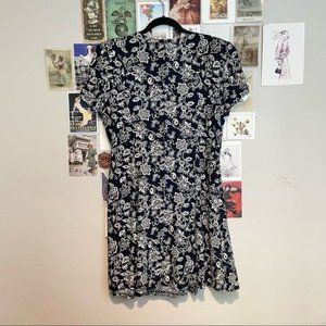 VINTAGE FAIRYCORE FAECORE TIE FRONT FIT N FLARE SHORT SLEEVE DRESS L BLUE WHITE