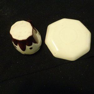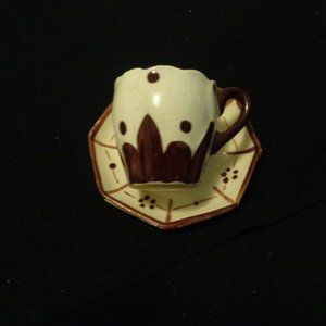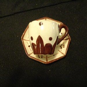 VINTAGE FAIRYCORE SM POTTERY TEACUP & SAUCER BROWN CREAM