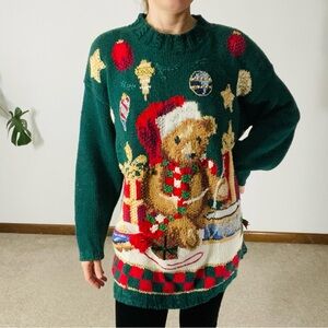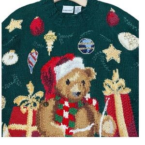 VINTAGE FASHION BUG Teddy Bear Christmas Sweater
