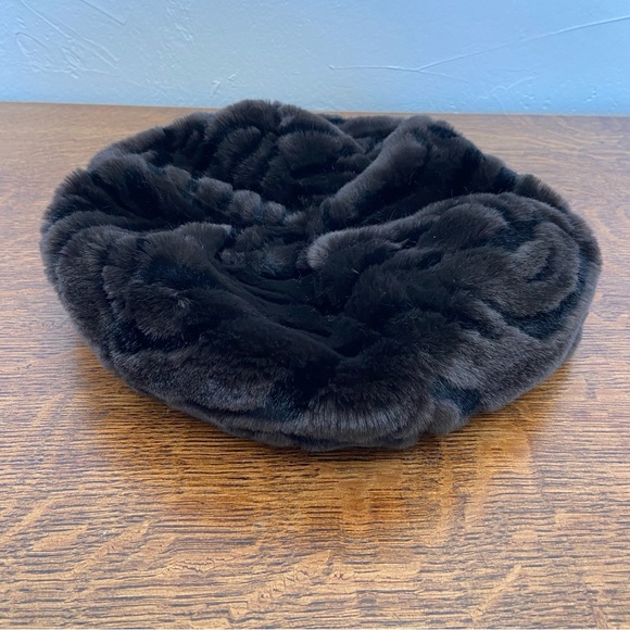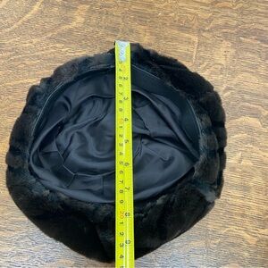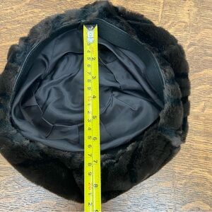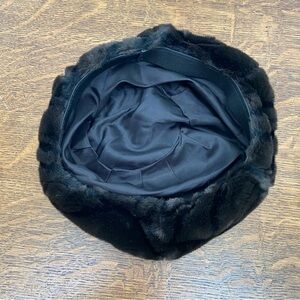 VINTAGE FAUX FUR BLACK BROWN CIRCLE WOMENS FANCY CHIC WINTER BEATNIK HAT