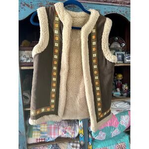 VINTAGE FAUX FUR LINED FAUX SUEDE SHEARLING VEST HIPPIE BOHO