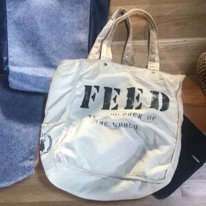 1) This is the original “Feed” bag. Reversible. “FEED” burlap bag is heavily used and pre-loved. Wear, holes, stain. See pictures