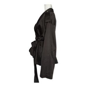 If you are looking for a timeless and versatile piece of outerwear, you might want to consider the vintage Fendi black front wrap cotton jacket with a long wrapping belt.