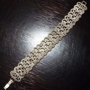 VINTAGE FINE SCROLL FILIGREE PANELS DESIGN SILVERY GOLDEN MARCASITES BRACELET 74