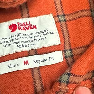 VINTAGE FJÄLLRÄVEN Men’s Orange Brown Plaid Övik Flannel Button-Up Shirt Size Me