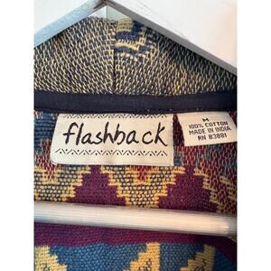 Step back in time with this awesome vintage Flashback Aztec tapestry jacket! This unique piece features a vibrant Aztec-inspired pattern that's sure to turn heads. Perfect for adding a pop of color and a retro vibe to any outfit. Great for festivals, concerts, or just making a statement. It's in good condition for its age, with no major flaws. The jacket is a size medium and fits true to size. It's made from a comfortable and durable material that will keep you warm and stylish all season long. Don't miss out on this one-of-a-kind vintage find!