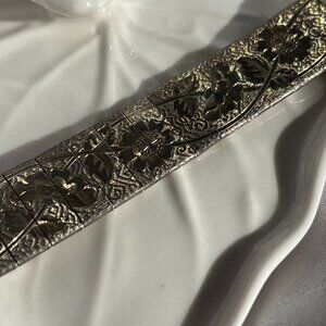 Nice vintage floral facade chain mesh bracelet. Age-related tarnish to metal. Metal looks silver-plated with a gold sheen to it. Unsigned. Measures appx. 7”.