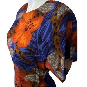 Step out in style with this stunning floral dress. Featuring vibrant blue and orange hues, it's perfect for any occasion. The elegant design ensures you look chic and sophisticated.