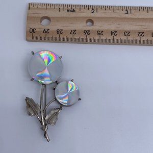 VINTAGE FLOWER BROOCH HOLOGRAM JEWELARAMA SILVER TONE METAL JEWELRY PIN.