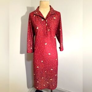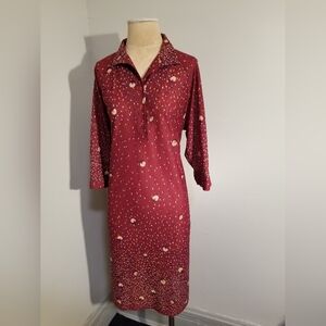 VINTAGE FOREVER YOUNG DRESS FLORAL PRINT RETRO BURGUNDY RED 70S HIPSTER VTG 80S
