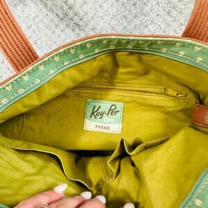 VINTAGE FOSSIL KEY PER JADE GREEN COATED CANVAS LEATHER TOTE BAG & WALLET