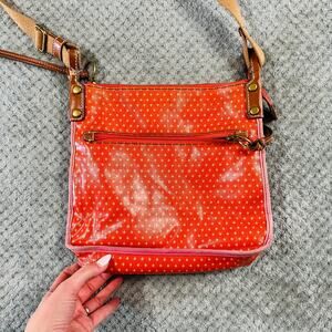 VINTAGE FOSSIL KEY PER NYLON CANVAS COATED ORANGE CROSSBODY TOTE BAG PURSE