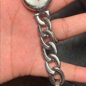 Sliver chain FOSSIL watch!! Light scratching overall in good condition, just needs a new battery. Will be cleaned before sold.