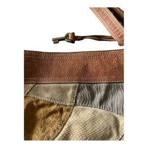 VINTAGE FOSSIL-LEATHER AND SUEDE PATCHWORK CROSSBODY