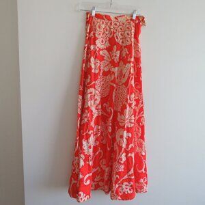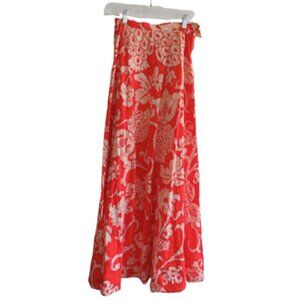 VINTAGE FRITZI OF CALIFORNIA Hawaiian Floral Maxi Skirt in Orange White Sz XS