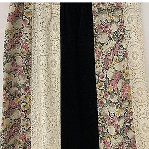 VINTAGE FRITZI OF CALIFORNIA LACE & FLORAL COLORBLOCK BOHO MAXI SKIRT