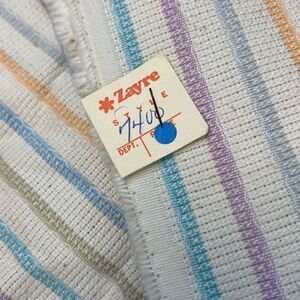 VINTAGE Fabric Remnant Approx 70”x60” White w Pastel Stripes ZAYRE