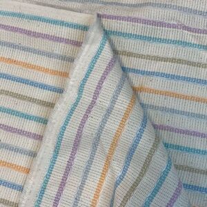 VINTAGE Fabric Remnant Approx 70”x60” White w Pastel Stripes