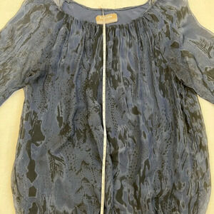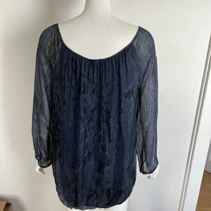 VINTAGE Fabrizia Blue Silk Boho Elastic Hem BLOUSE TUNIC TOP Size Large