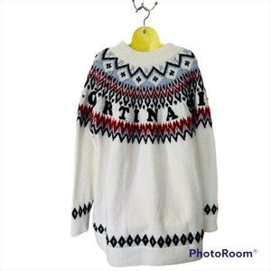 Vintage Fair isle Icelandic-Chunky-hand-knitted-White-Winter-Fisherman Sweater. Size XLarge