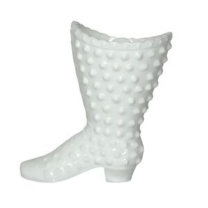 VINTAGE Fenton Boot Lace up Hobnail Vase Glass Home decor White Signed piece