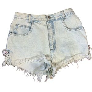 VINTAGE Filippo-Totti 80’s acid light wash high waist frayed raw hems shorts