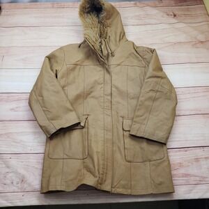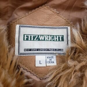 VINTAGE Fitzwright Jacket Womens Large Tan Leather Hooded Faux Fur Parka Coat