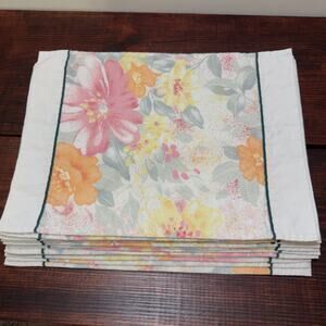 Tags: VTG Linens Urban Chic Hippie Boho Decor Spring Pretty Dainty 70s 80s 90s 2000s Flowers Water Beachy Florida Set Matching Tableware Dinnerware Napkin Set Watercolor Abstract Paint Brush Splatter Bright Sunny Beach Lake House Vacation Orange Yellow Green Pink Green Large Family Gathering Easter Dinner Linens